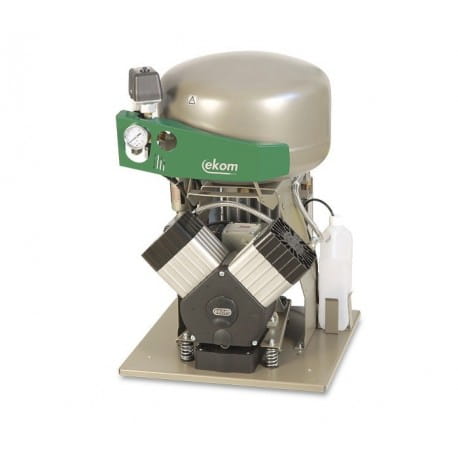 Niezawodny bezolejowy kompresor EKOM serii DK50 2V jest źródłem czystego, ciśnieniowego powietrza przeznaczonym do napędu sprzętu i urządzeń stomatologicznych. Swoimi parametrami oraz wielkością zbiornika 25 litrów nadaje się do zasilania dwóch unitów stomatologicznych lub urządzeń w laboratoriach dentystycznych. Powietrze produkowane przez bezolejowe kompresory, zapewnia wyższy poziom higieny i jakości prac dentystycznych i nie zanieczyszcza środowiska pracy substancjami obcymi.